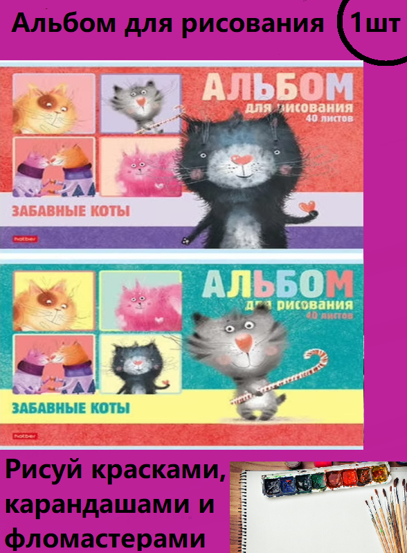 Альбом для рисования Хатбер Забавные коты, на скрепке. Формат А4, 40 листов. Подходит для рисования карандашами, фломастерами, красками.