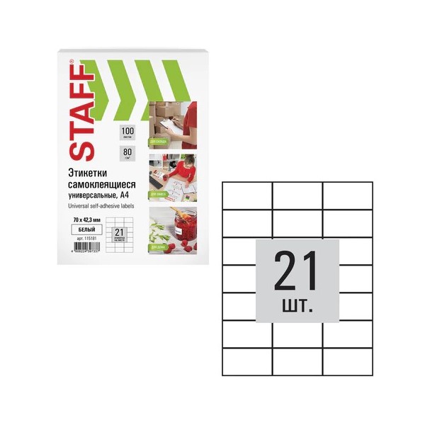 Универсальные самоклеящиеся этикетки STAFF позволят быстро и качественно подготовить адресные наклейки, регистрационные номера, аннотации при помощи лазерного или струйного принтера.