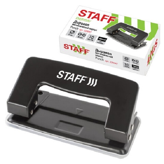 Полностью металлический дырокол пробивает до 10 листов бумаги. Благодаря качественным пробойникам обеспечивает легкое и точное пробивание бумаги. Количество пробиваемых отверстий - 2, диаметр каждого - 6 мм, расстояние между отверстиями - 8 мм. Метка центрирования поможет ровно разместить листы. Оснащен контейнером для сбора мусора, а также блокиратором для компактного хранения. Классический черный цвет отлично впишется в любой интерьер
