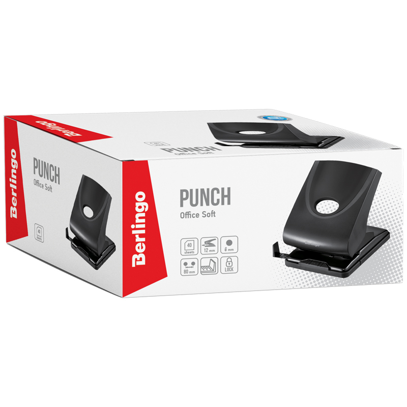 Пластиковый дырокол. Форматная линейка. Поддон для конфетти. Фиксатор открывания для компактного хранения. Пробивает до 40 л. Шаг перфорации - 80 мм. Диаметр отверстия - 6 мм. Упаковка в картонную коробку. Цвет черный.