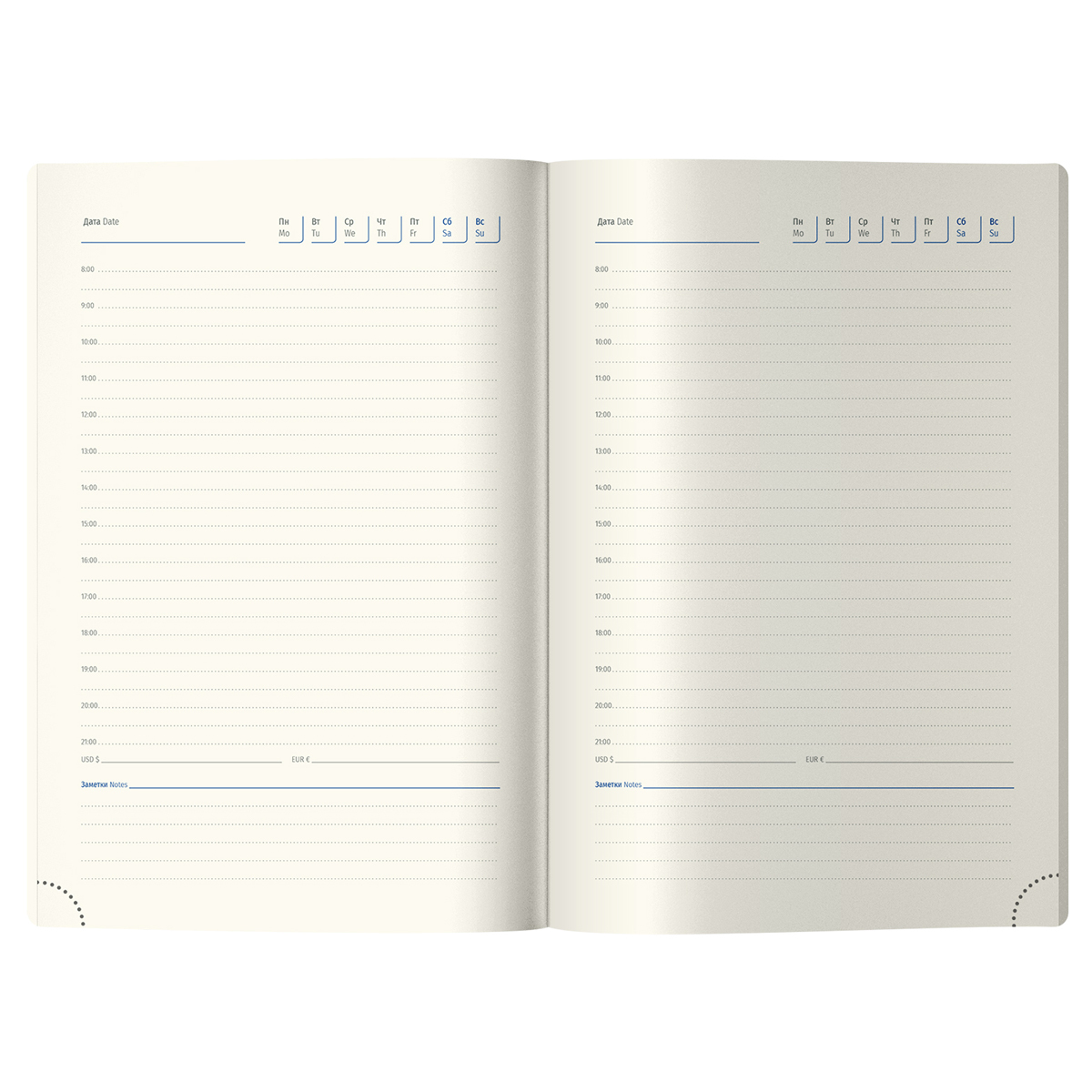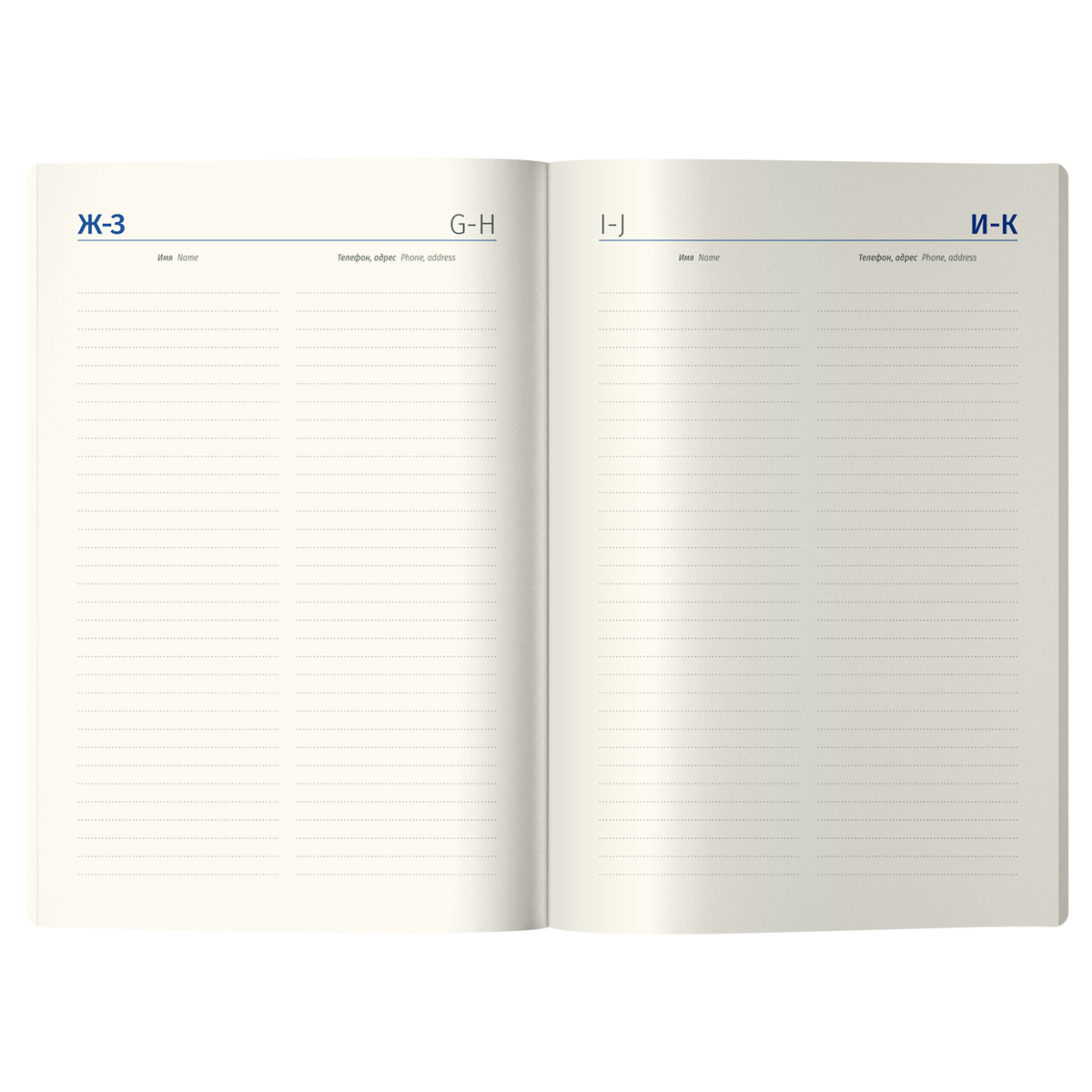 Перфорированные уголки, справочная информация и 2 закладки-ляссе сделают использование ежедневника комфортным. Внутри есть отрывные заметки, бланки извещения о ДТП и справочные материалы. Недатированный прошитый ежедневник Berlingo подходит под персонализацию.