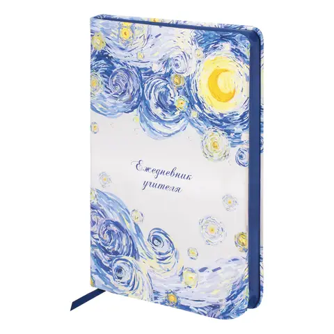 Обложка выполнена из твердого картона с покрытием из экокожи и книжным переплетом в сочетании с ярким рисунком, который создает красивый визуальный эффект. Внутренний блок содержит 144 листа офсетной бумаги плотностью 70 г/м2. Недатированный ежедневник учителя формата А5 (215х145 мм) станет прекрасным и полезным подарком для представителей этой профессии, а яркая обложка украсит рабочее место.