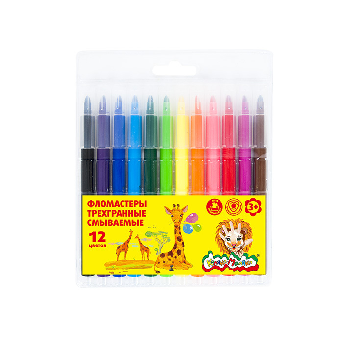Трехгранные фломастеры Каляка-Маляка готовят детскую руку к письму.Трёхгранная форма сохраняет естественное положение руки, снижая нагрузку на кисть. Прочный утолщенный пишущий узел надёжно защищён от вдавливания, чернила ярких и насыщенных цветов имеют высокий уровень светостойкости. Цвета фломастеров соответствуют естественным природным цветам, что положительно влияет на формирование правильного цветового восприятия, развитие творческих способностей ребенка. Прочный пишущий узел не деформируется и не проваливается. Изготовлены в соответствии с международными стандартами, что обеспечивает безопасность использования продукции даже самыми маленькими детьми.
