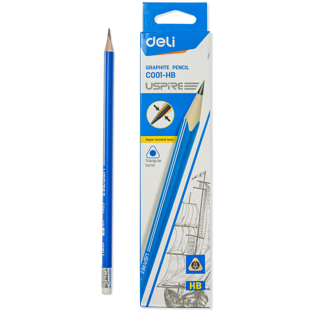 Карандаш чернографит. Deli EC001-HB Uspire HB трехгран. тополь ластик коробка картонная (12шт)