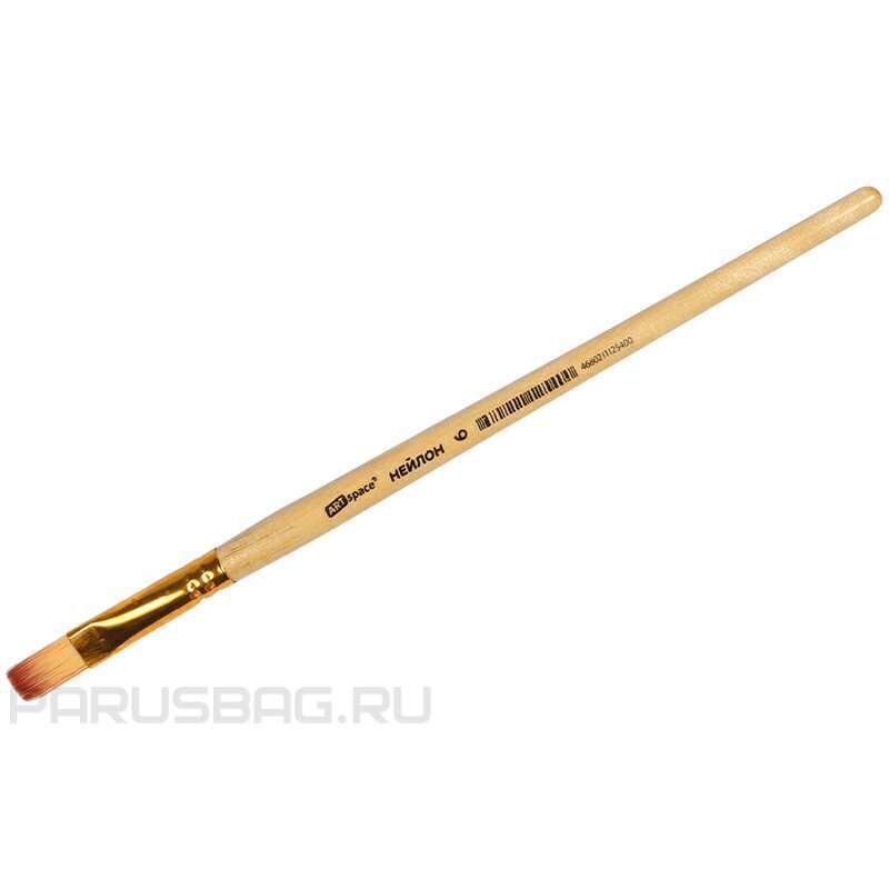 Кисть нейлон №6 плоская. Бюджетный вариант для школьников, где редко пользуются акрилом и маслом, чаще гуашью и акварелью. Они идеальны для начинающих художников, поэтому их часто используют в детских образовательных учреждениях. Кисти также подходят для малышей.