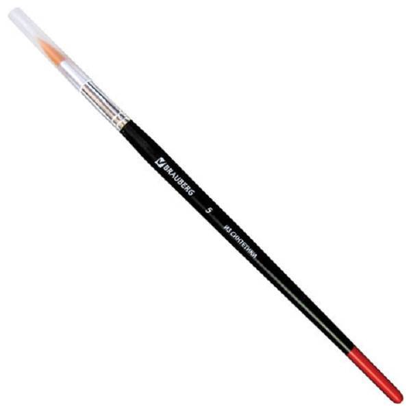 Кисть синтетика круглая № 5. Высококачественная кисть из синтетического волоса. Кисть сохраняет свою упругость при намокании. Отличается долгим сроком службы. Подходит для всех типов красок: акварель, гуашь, масло, акрил. Снабжена защитным пластиковым колпачком.