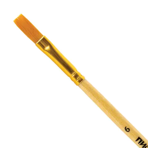 Кисть из синтетического ворса эластичная, не распадается, хорошо держит форму, долговечна и надежна. Кисть № 6 позволит прорисовывать детали и наносить мазки и линии. Деревянную лакированную рукоятку кисти удобно держать в руке.