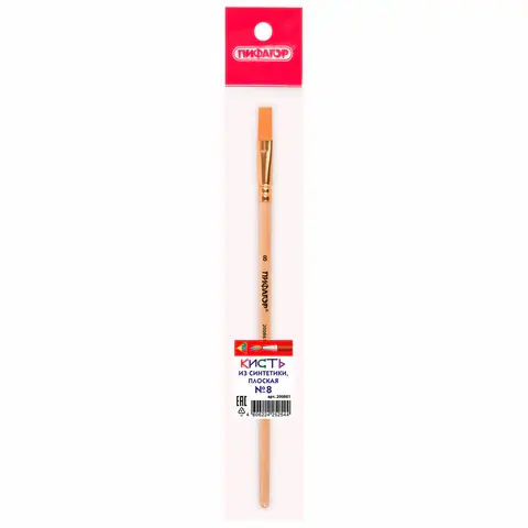 Кисть из синтетического ворса эластичная, не распадается, хорошо держит форму, долговечна и надежна. Кисть № 8 позволит прорисовывать детали и наносить крупные мазки и линии. Деревянную лакированную рукоятку кисти удобно держать в руке.