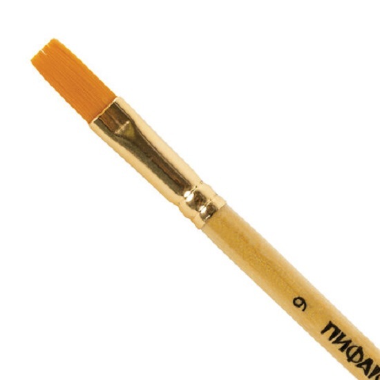 Кисть из синтетического ворса эластичная, не распадается, хорошо держит форму, долговечна и надежна. Кисть № 9 позволит прорисовывать детали и наносить крупные мазки и линии. Деревянную лакированную рукоятку кисти удобно держать в руке.