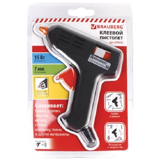 Клеевой пистолет предназначен для прочной фиксации поверхностей с помощью расплавленной клеевой массы. Является одним из главных помощников в творчестве для изготовления разнообразных поделок, а также в быту для склеивания мелких деталей. С его помощью можно склеить дерево, пластик, резину, кожу, стекло, металл, ткань, пенопласт, керамику, картон, бумагу, цветы и проч. Заправляется специальным клеевым стержнем диаметром 7 мм. Пистолет клеевой мощностью 15 Вт работает от сети. Производительность 6 г/мин обеспечивает непрерывную подачу клея. Рабочая температура пистолета: 130-272 градусов. 2 клеевых стержня в комплекте. Корпус изготовлен из ударопрочной пластмассы и имеет скобу для надежной установки в нерабочем положении