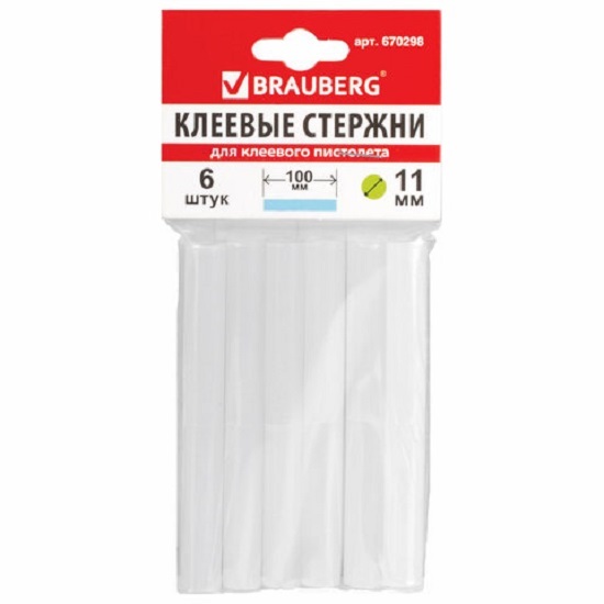 Термоклей прочно и быстро скрепит различные материалы: бумагу, дерево, картон, стекло, пластмассу, металл, кожу, синтетические волокна и т. д. Диаметр клеевого стержня 11 мм и длина 10 см являются самыми востребованными параметрами для выполнения работ. Цвет клеевого стержня белый. В комплект входит 6 клеевых стрежней, обеспечивающих непрерывный рабочий процесс.