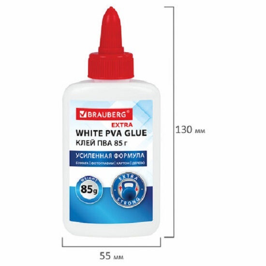 Аккуратное нанесение обеспечивается дозатором с колпачком, который надежно предохраняет клей от высыхания. Благодаря усиленной формуле клей подходит для склеивания не только бумаги и картона, но и для дерева, ткани, фотобумаги. Клей безопасен для здоровья.