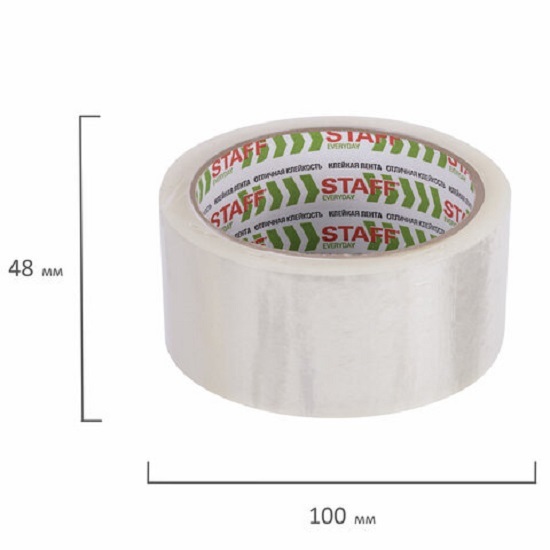 Толщина скотча 40 мкм позволяет переносить воздействие низких температур и влажности и выдерживать вес коробки 15-17 кг. Клейкой ленты шириной 48 мм и длиной намотки 66 м хватит на продолжительное время. Цвет - прозрачный.