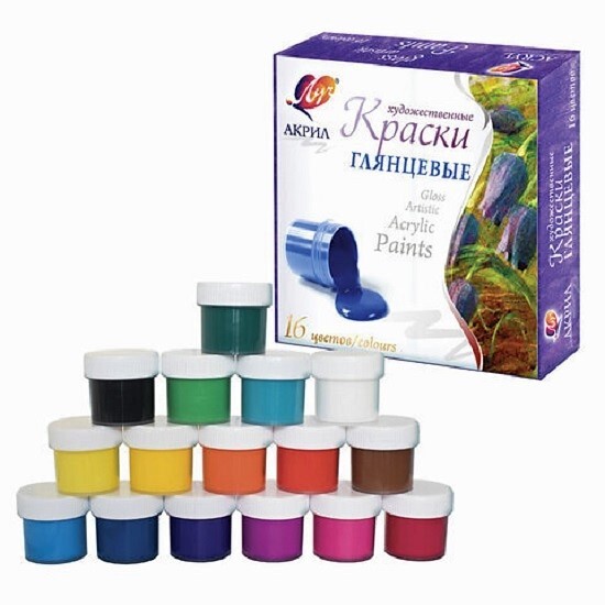 Акриловые краски предназначены для художественных, декоративных и дизайнерских работ. Являются универсальным материалом для творчества. Красками можно работать практически на любой поверхности (бумага, картон, грунтованный холст, дерево, металл, кожа и других). - Красивые классические цвета - Прекрасно смешиваются между собой - Быстро высыхают - Обладают отличной адгезией (сцепляемость с поверхностью) - Равномерно наносятся - Обладают хорошей светостойкостью (не выгорают) - Разбавляются водой в жидком виде - После высыхания образуют несмываемую плёнку - Красочный слой эластичен, прочен и долговечен. При высыхании имеет глянцевую поверхность. - Оптимальная консистенция краски - Удобные герметичные баночки, предотвращающие высыхание краски