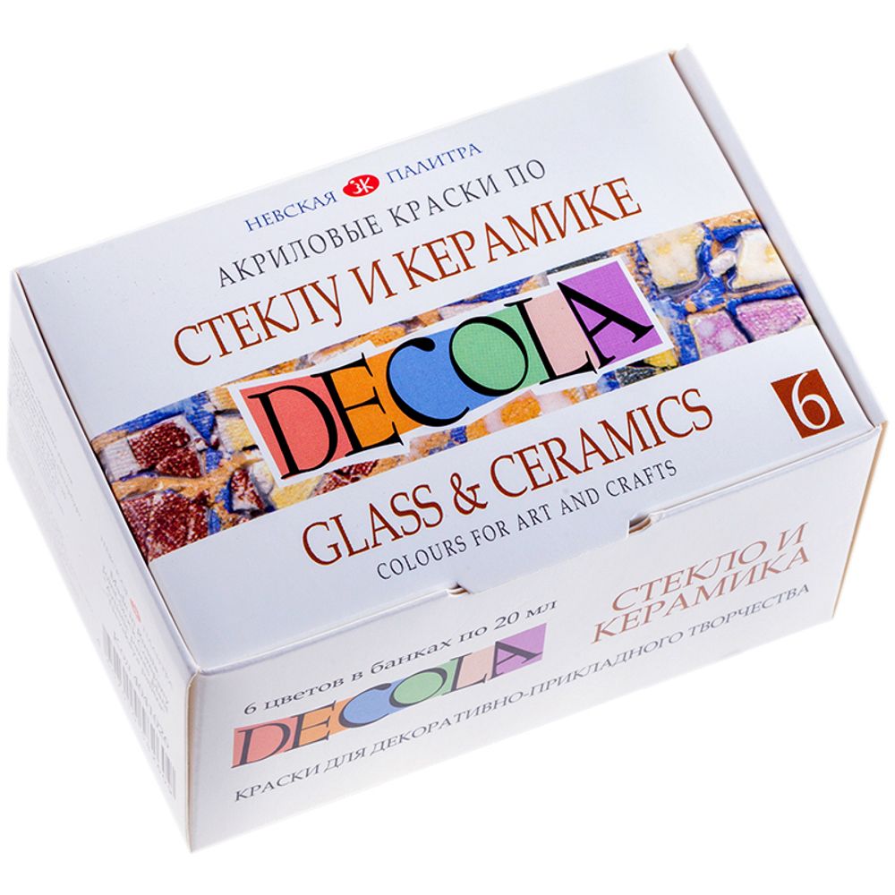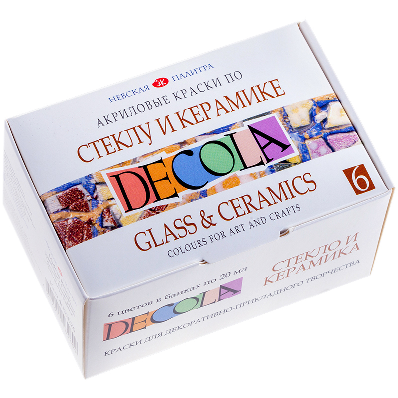 Декоративная краска для работ по стеклу и керамике Decola устойчива к воде, не выцветает на солнце. Высыхает при комнатной температуре в течение 24 часов. Помимо стекла и керамики может быть использована для декора фарфора, фаянса, пластиковых поверхностей. Акриловые краски Decola хорошо смешиваются друг с другом, давая новые яркие оттенки.