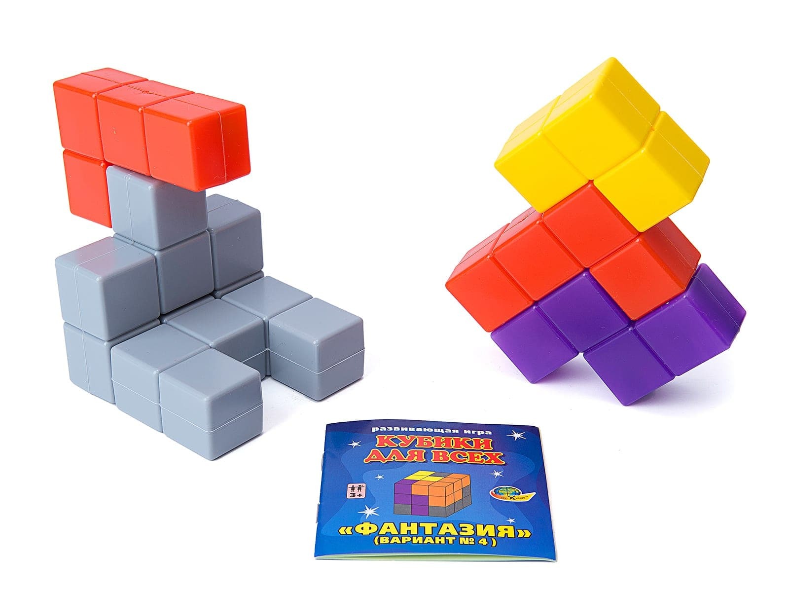 Кубики Фантазия»- это логическая игра. Из набора можно сложить большое количество красивых фигур. Придумывание и самостоятельное составление различных фигур. В составе этой игры 27 отдельных кубиков, соединённых между собой определенным образом, в результате чего получаются фигуры разной конфигурации.