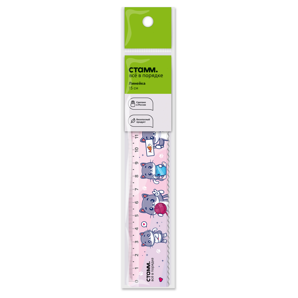 Линейка серии «Котики» предназначена для выполнения чертёжных и измерительных работ. Изделие имеет контрастную миллиметровую шкалу. Длина шкалы – 15 см, ширина линейки – 31 мм. Имеет безопасные закруглённые края. Линейка оборудована волнистым краем для подчёркивания выделяемых слов и словосочетаний. Изготовлена из качественного полистирола и имеет гладкую глянцевую поверхность. Упакована в пакет с европодвесом. Линейка выполнена в оригинальном и ярком дизайне.