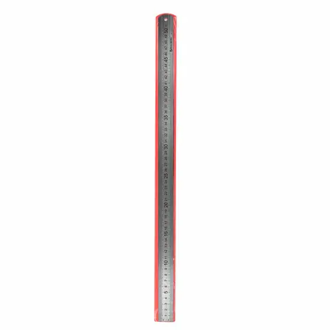 Изготовлена из высококачественной пружинистой стали. Длина шкалы составляет 50 см. Линейка обладает четкой разметкой, что делает ее удобной в использовании. Имеет двойную градацию шкалы (сантиметр, дюйм). Устойчива к деформации.