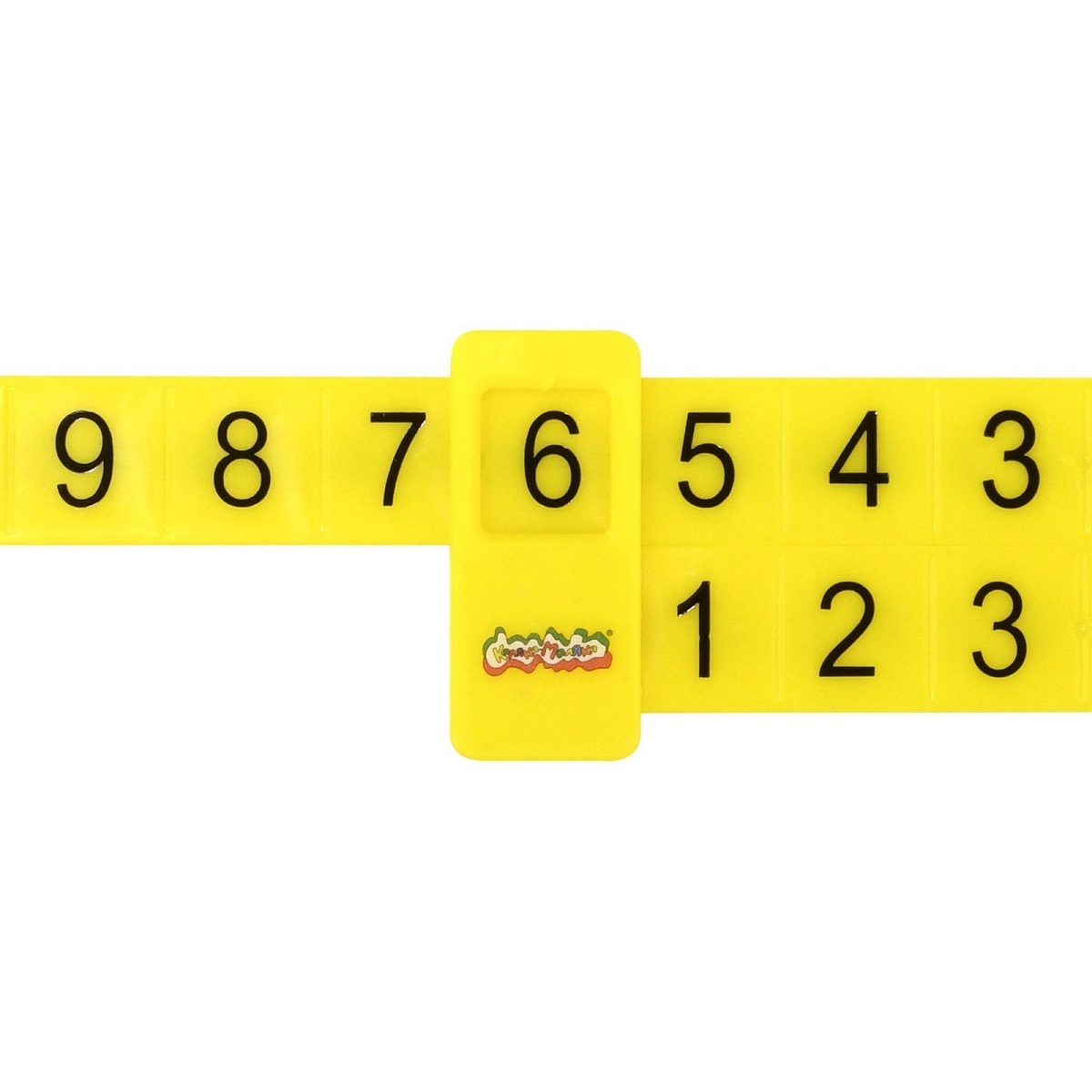 Линейка состоит из двух подвижных рядов с числами. Раздвиньте линейку, чтобы увидеть в окошке число, равное сумме чисел верхней и нижней ячеек линейки, располагающихся в одном столбце.