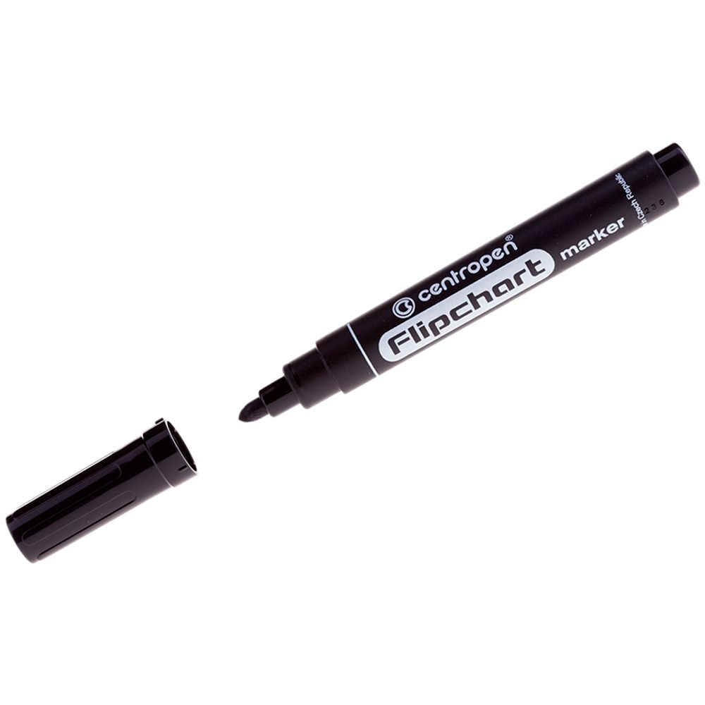 Маркер для флипчарта, черный. При письме на флипчарте, чернила не просачиваются и не пачкают следующий лист флипчарта. Маркер может находиться с открытым колпачком до 7 дней. Пулевидный наконечник, толщина линии 2,5 мм.