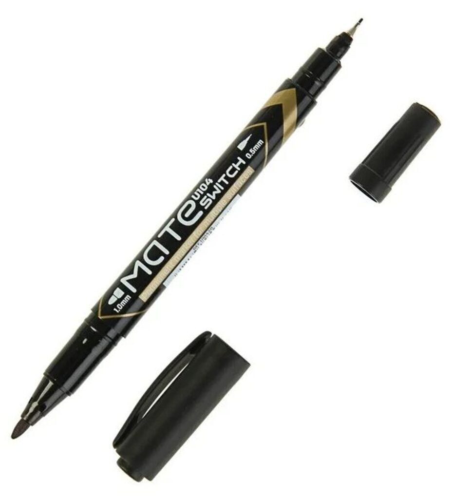 Маркер перманентный двойной пишущий наконечник 0.5-1мм черный, длина письма150 м, круглый пишущий наконечник, быстросохнущий, не смывается водой