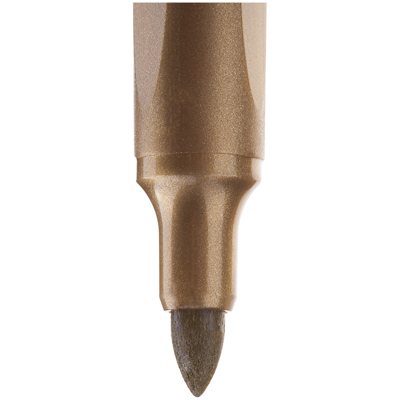 Универсальный перманентный, золотой маркер. Эргономичная зона обхвата. Устойчив на пористых поверхностях, идеально подходит для декорирования. Светостойкие чернила. Пулевидный наконечник, толщина линии 1,5-3 мм. Хранить в горизонтальном положении.