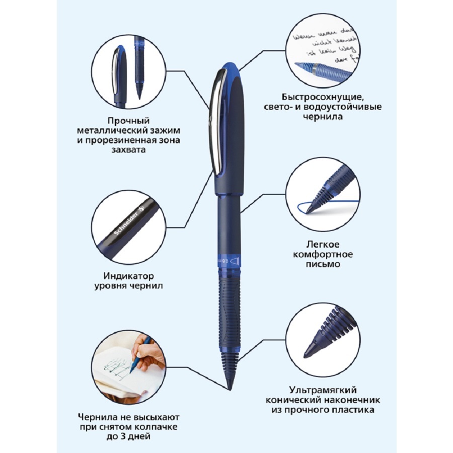 Ручка-роллер Schneider One Business с круглым прорезиненным корпусом и металлическим клипом. Диаметр пишущего узла ручки составляет 0,8 мм, толщина линии письма – 0,6 мм. Длина письма может достигать 2000 метров! Чернильный роллер с ультрамягким наконечником из прочного пластика. Также есть окно-индикатор чернил. Цвет элементов корпуса соответствует синему цвету чернил. Быстросохнущие, свето- и водоустойчивые чернила соответствуют международному стандарту качества ISO 14145-2 и отлично подходят для заполнения и подписи документов. Письменные принадлежности Schneider разрабатываются и производятся только в Германии.