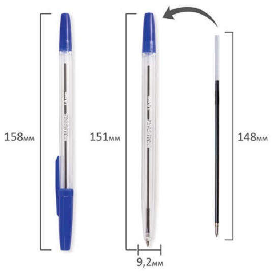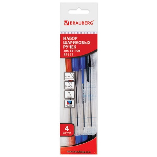 Набор из 4 штук в прозрачном корпусе с деталями в цвет чернил. Сменный стержень длиной 152 мм. Диаметр пишущего узла 1,0 мм создает тонкую линию письма 0,5 мм. В набор входят 2 ручки с синими чернилами, 1 ручка с черными чернилами и 1 ручка с красными чернилами. Лаконичный дизайн соответствует офисному стилю.