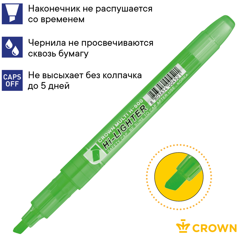 Набор текстовыделителей Crown - четыре ярких неоновых цвета в одном наборе.