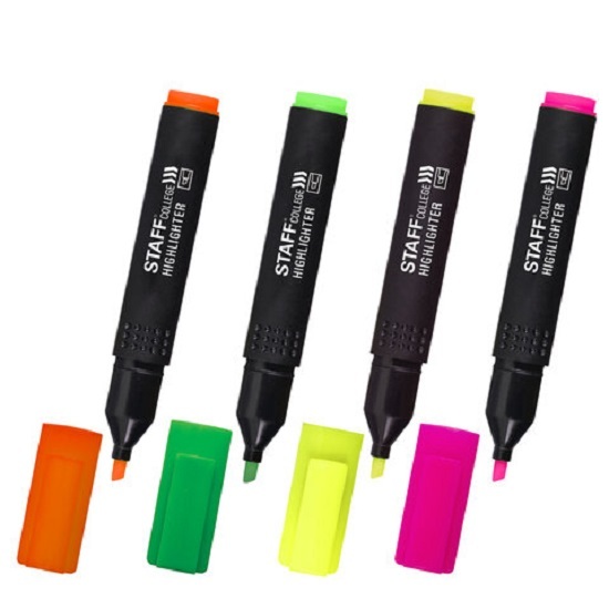4 неоновых цвета в наборе: желтый, зеленый, оранжевый, розовый. Плоская форма корпуса диаметром 18 мм. Корпус текстовыделителя оснащен удобной зоной захвата. Скошенный наконечник имеет толщину линии письма от 1 до 4 мм, что обеспечивает удобство при работе с текстом, напечатанным мелким шрифтом, или таблицами. Текстовыделитель обладает экономным расходом чернил. Светоустойчивые чернила на водной основе не выцветают даже на открытом солнце и не размазываются в процессе использования. Изделие не перезаправляется. Колпачок с клипом и соответствует цвету чернил.