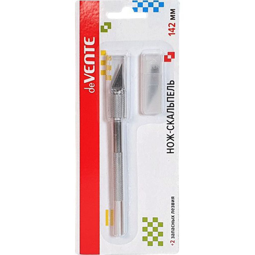 Нож-скальпель канцелярский "deVENTE" металлический, c 2-мя запасными лезвиями, картонный блистер