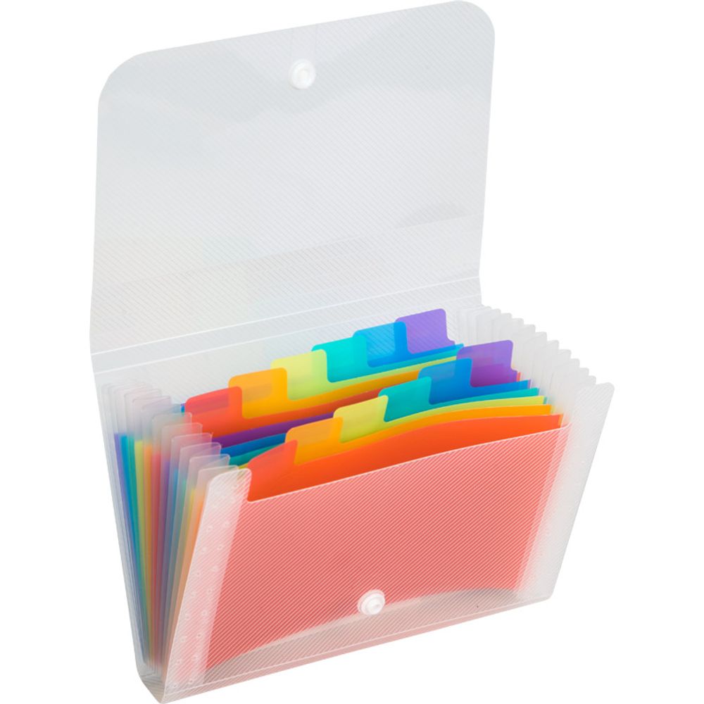 Папка на кнопке с 13-ю отделениями "deVENTE. Stripe" пластиковая 600 мкм, для документов формата C6 (178x130x20 мм) цветные внутренние отделения толщиной 160 мкм, в комплекте с бумажными индексами, текстурная прозрачная