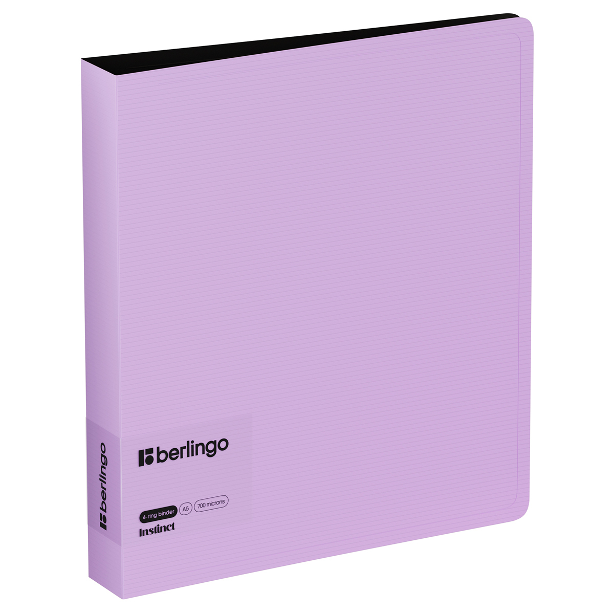 Папка на 4 D–кольцах Berlingo серии Instinct формата А5 – стильный аксессуар для офиса и учёбы. Лавандовый цвет внешней стороны в сочетании с фактурой «горизонтальные линии», чёрный цвет внутренней поверхности. Толщина обложки – 700 мкм. Ширина корешка составляет 35 мм. Стильные черные кольца и фурнитура. Специальная D–форма колец диаметром 30 мм помогает удобно и ровно хранить документы, которые могут быть выровнены по левому краю, благодаря боковой вертикальной стенке кольца. Вместимость папки – 200 листов. На внутренней стороне обложки папка оснащена плотным прозрачным карманом для удобного хранения мелочей: ручки, заметок, визиток, дисков, флешек и др. Размер папки составляет 225*200*35 мм. Упакована в индивидуальный прозрачный пакет по форме.
