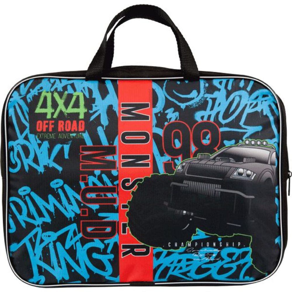 Папка для тетрадей широкая "Attomex. Offroad Monster" A4 (35x27x7 см) текстильная, с текстильным расширением 7 см, на молнии сверху, с внутренним карманом, с текстильными ручками увеличенной длины 24 см