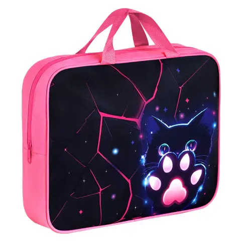 Папка для тетрадей формата А4 с ручками для переноски изготовлена из прочного полиэстера. Внутри одно отделение, застегивается на молнию по верхнему краю.