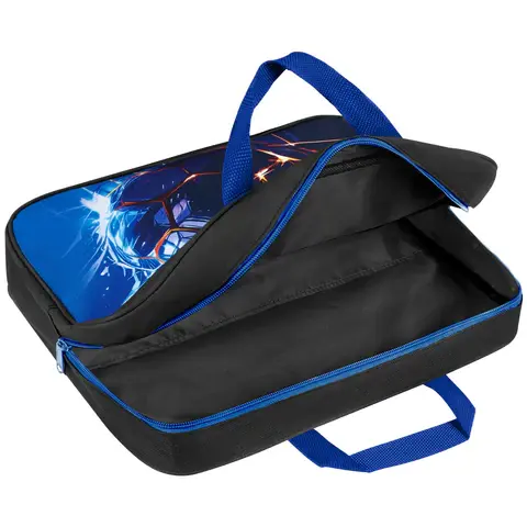 Папка для тетрадей формата А4 с ручками для переноски изготовлена из прочного полиэстера. Внутри одно отделение, застегивается на молнию по верхнему краю.