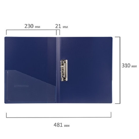 Изготовлена из высококачественного пластика толщиной 0,7 мм с оригинальной линейной фактурой. Обеспечивает хранение до 100 листов формата А4. Снабжена боковым прижимом и прозрачным внутренним карманом. Для идентификации имеется сменный бумажный корешок. Поставляется в индивидуальной упаковке.