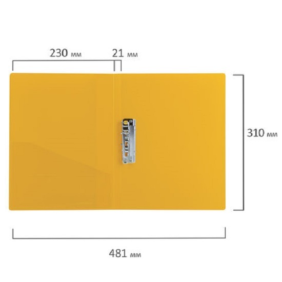 Изготовлена из высококачественного пластика толщиной 0,7 мм с оригинальной линейной фактурой. Обеспечивает хранение до 100 листов формата А4. Снабжена боковым прижимом и прозрачным внутренним карманом. Для идентификации имеется сменный бумажный корешок. Представлена в желтом цвете. Поставляется в индивидуальной упаковке.