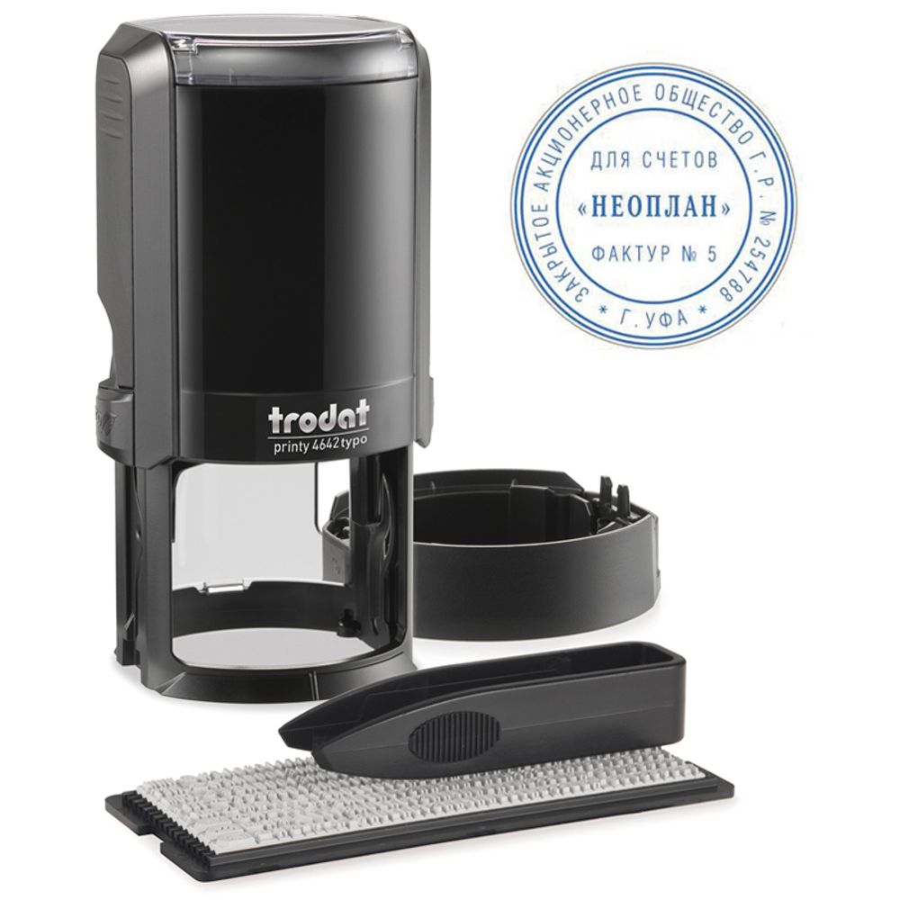 Самонаборная печать 1,5 круга. Наличие крышки позволяет переносить печать в сложенном виде. Интуитивно простая смена подушки, при которой пальцы всегда останутся чистыми. Долговечность, благодаря металлической втулке.