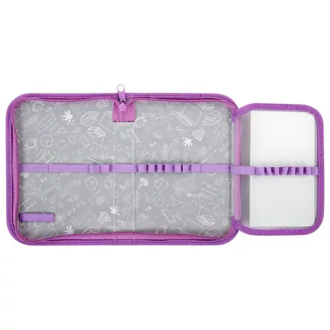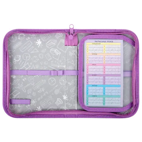Материал пенала – полиэстер с цветной печатью и ярким дизайном. Основа пенала – плотный картон, обшитый тканью по краям. Такая конструкция отличается износостойкостью и прочностью, поможет защитить канцелярские принадлежности от повреждений. Внутри пенала на каждой створке прочные резинки для канцелярских принадлежностей, также пенал оснащен откидной планкой с органайзером и прозрачным кармашком для расписания уроков. Шаблон расписания уроков идет в подарок! Внутренняя часть выполнена из картона с глянцевой ламинацией.