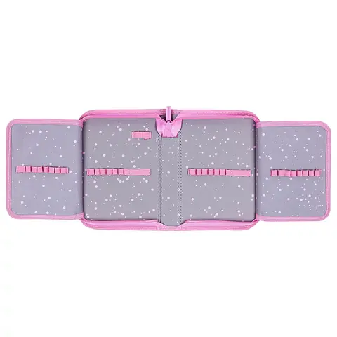 Пенал оснащен 1 основным отделением с 2 откидными планками. Вмещает до 35 предметов.