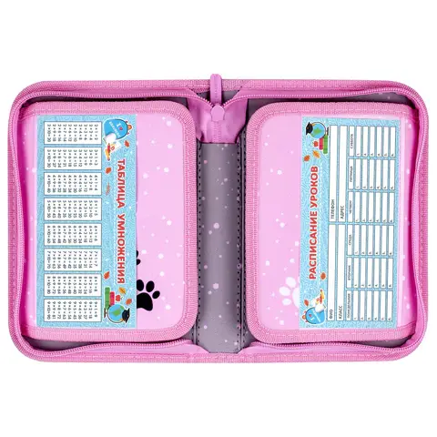 Пенал имеет стандартный размер 21х14 см, что позволяет легко размещать его в ранце, рюкзаке или сумке. Хорошая наполняемость пенала дает возможность держать все необходимые для уроков канцтовары в одном месте. Внутри пенала имеются вкладыши с расписанием уроков и таблицей умножения.
