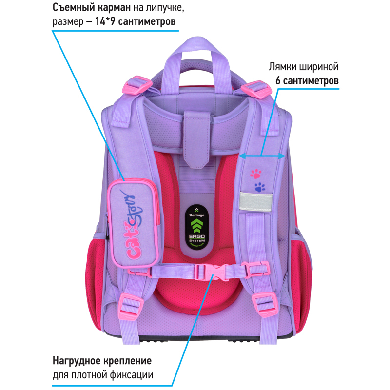 Эргономичный ранец серии Expert для детей младшего и среднего школьного возраста выполнен из экологичного ЭВА материала с покрытием из высокопрочной нейлоновой ткани кордура. За счет особой структуры нити в ней достигнута четырёхкратная стойкость к истиранию по сравнению с простым нейлоном. Кордура обладает водоотталкивающими свойствами и легко чистится. Благодаря анатомической вентилируемой спинке, регулируемым по длине и высоте лямкам, а также нагрудному креплению ранец плотно фиксируется на спине ребенка, что помогает равномерно распределить нагрузку и сохранить правильную осанку. Ранец имеет 2 отделения, 2 боковых кармана на резинке, съемный кошелек на лямке для быстрого доступа к необходимым вещам. Внутри предусмотрены разделители для учебных пособий, органайзер для письменных принадлежностей, карман для мобильного телефона, карабин для ключей и именная карточка для подписи. Уплотненная мягкая ручка и петля для подвешивания к парте делают ранец очень удобным.