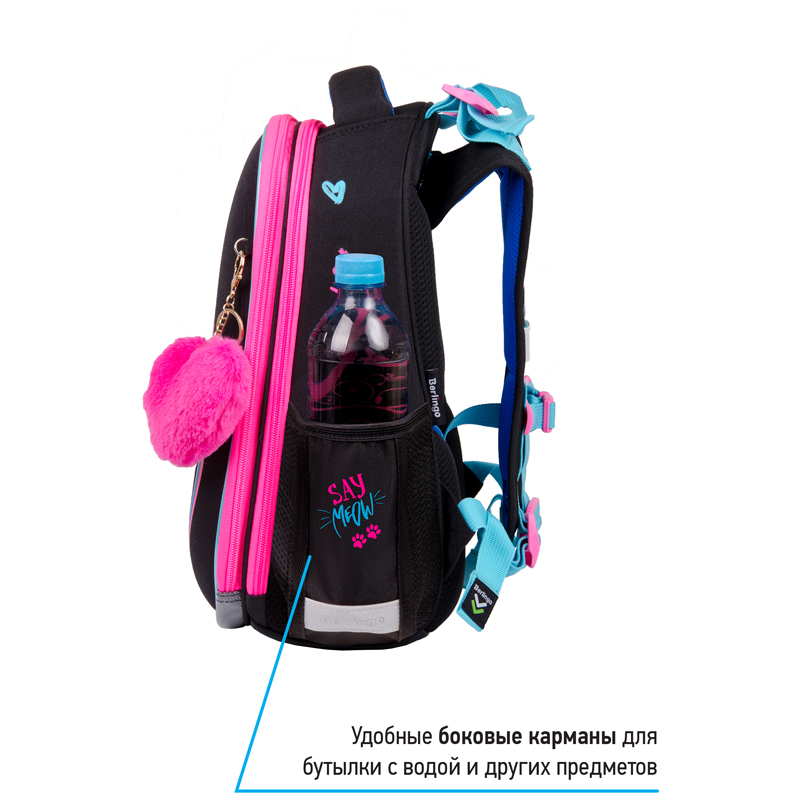 Эргономичный ранец серии Expert для детей младшего и среднего школьного возраста выполнен из экологичного ЭВА материала с покрытием из высокопрочной нейлоновой ткани кордура. Кордура обладает водоотталкивающими свойствами и легко чистится. Благодаря анатомической вентилируемой спинке, регулируемым по длине и высоте лямкам, а также нагрудному креплению ранец плотно фиксируется на спине ребенка, что помогает равномерно распределить нагрузку и сохранить правильную осанку. Ранец имеет 2 отделения, 2 боковых кармана на резинке, съемный кошелек на лямке для быстрого доступа к необходимым вещам. Внутри предусмотрены разделители для учебных пособий, органайзер для письменных принадлежностей, карман для мобильного телефона, карабин для ключей и именная карточка для подписи. Уплотненная мягкая ручка и петля для подвешивания к парте делают ранец очень удобным.