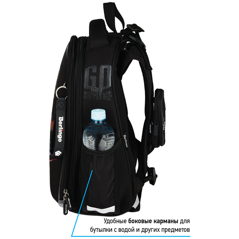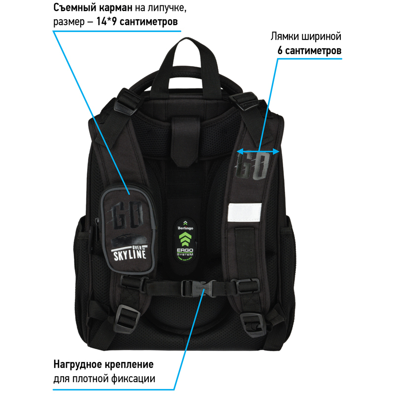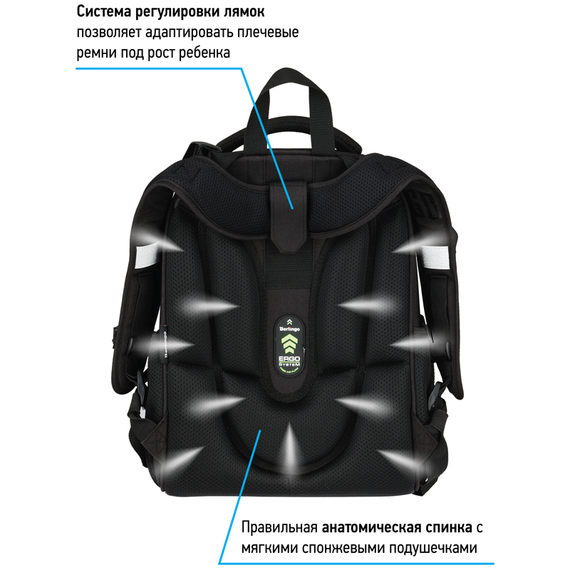 Эргономичный ранец серии Expert для детей младшего и среднего школьного возраста выполнен из экологичного ЭВА материала с покрытием из высокопрочной нейлоновой ткани кордура. Кордура обладает водоотталкивающими свойствами и легко чистится. Благодаря анатомической вентилируемой спинке, регулируемым по длине и высоте лямкам, а также нагрудному креплению ранец плотно фиксируется на спине ребенка, что помогает равномерно распределить нагрузку и сохранить правильную осанку. Ранец имеет 2 отделения, 2 боковых кармана на резинке, съемный кошелек на лямке для быстрого доступа к необходимым вещам. Внутри предусмотрены разделители для учебных пособий, органайзер для письменных принадлежностей, карман для мобильного телефона, карабин для ключей и именная карточка для подписи. Уплотненная мягкая ручка и петля для подвешивания к парте делают ранец очень удобным.