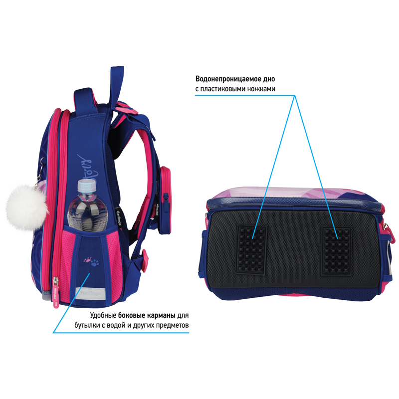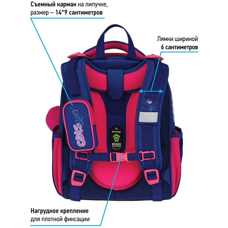 Эргономичный ранец Berlingo серии Expert для детей младшего и среднего школьного возраста выполнен из экологичного ЭВА-материала с покрытием из высокопрочной нейлоновой ткани кордура. Вес школьного ранца − менее 1 кг, размер − 37*28*16 см, объём − 16,5 л.Ранец для школы имеет 2 отделения, 2 боковых кармана на резинке, съемный кошелек на лямке для быстрого доступа к необходимым вещам. Внутри предусмотрены разделители для учебных пособий, органайзер для письменных принадлежностей, карман для мобильного телефона, карабин для ключей и именная карточка для подписи. Уплотненная мягкая ручка и петля для подвешивания к парте делают ранец очень удобным. Дно выполнено из водонепроницаемого материала с пластиковыми ножками для защиты от влаги. Световозвращающие элементы на лямках, передней и боковых частях ранца обеспечивают безопасность ребенка в темное время суток. Подвеска в подарок.