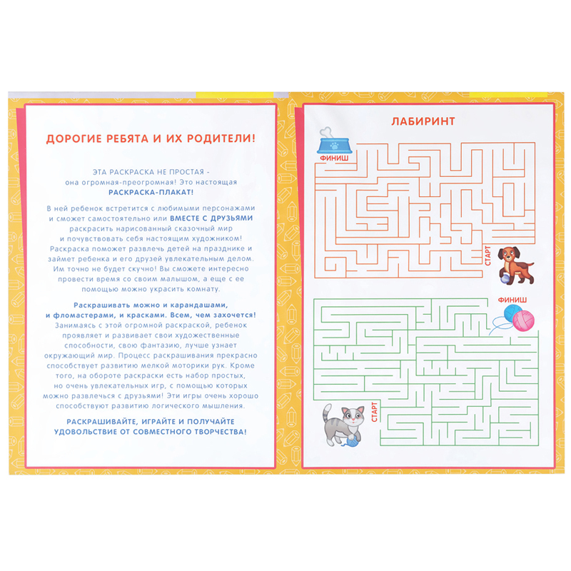 Раскраска-плакат «Мульти-Пульти» – это настоящая находка для тех, кто хочет увлечь своего ребёнка на долгое время. Формат: А4. Размер в разложенном виде – 850*590 мм. Такие раскраски полезны для развития мелкой моторики и воображения ребёнка с раннего возраста. Раскраска-плакат впишется в детские утренники и праздники. Малыши научатся подбирать цвета и комбинировать их. Плотная бумага подходит для раскрашивания цветными ручками, карандашами, фломастерами, маркерами и даже красками. На обратной стороне вы найдете 5 увлекательных игр.