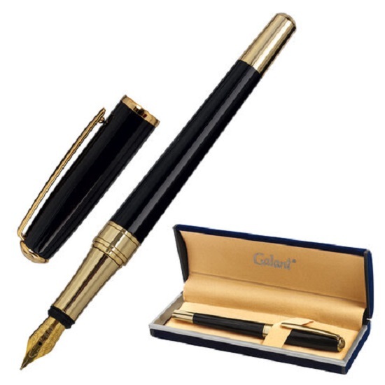 Роскошная модель перьевой ручки с корпусом из латуни черного цвета и золотистыми деталями. Синий цвет чернил, иридиевое перо украшено гравировкой. Диаметр пишущего узла – 0,8 мм. Тип пера M (Medium) – средняя ширина линии. Поставляется в индивидуальном подарочном футляре. Подходит для гравировки.