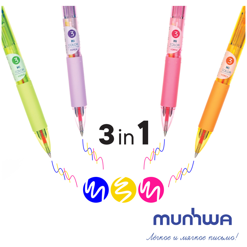 Автоматическая шариковая ручка с синим, неоновым желтым и неоновым розовым стержнем. Чернила пониженой вязкости мягко пишут на бумаге. Яркие неоновые цвета оптимально подходят для подчеркивая и выделения необходимой информации. Ручка поставляется в розовом, оранжевом, зеленом или фиолетовом корпусе.
