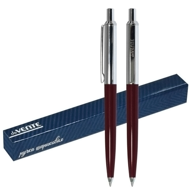 Ручка шариковая подарочная "deVENTE" d=1 мм, красным корпусом и хромированными элементами, сменный стержень, в подарочной коробке, синие чернила